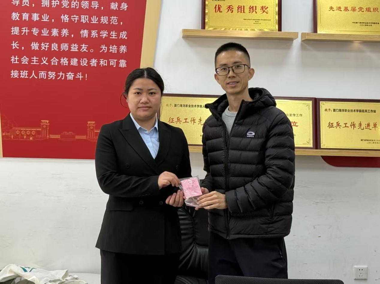 福建京元公司代表姚朝艳向国际商贸学院赠送爱心餐券