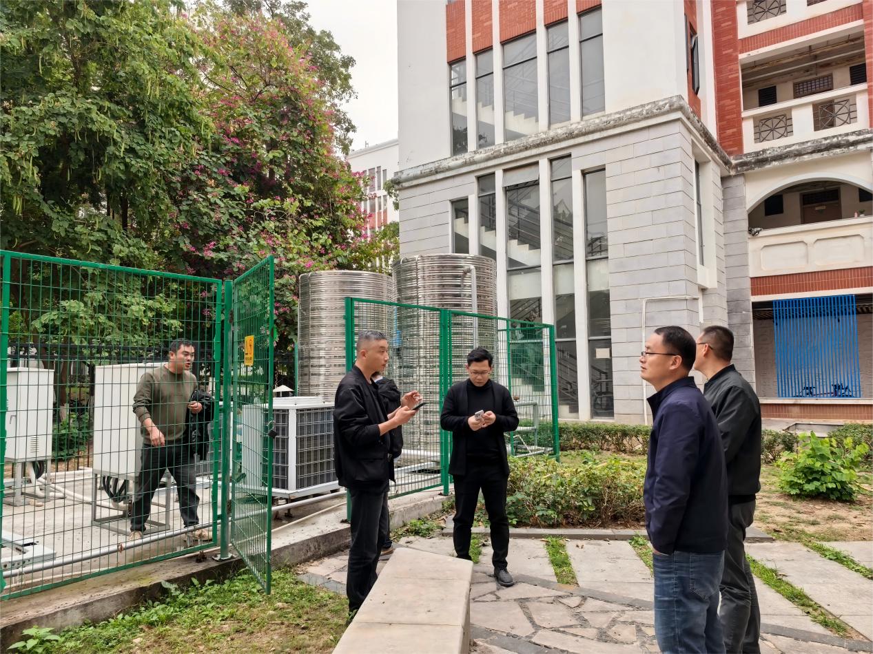 12月31日,后勤管理处处长赵平、副处长陈锟带领总务、基建、一二期扩建工程相关单位工作人员前往集美大学、厦门理工学院后勤处调研学生公寓空气能集中供热设备的采购、安装、维护与使用情况。