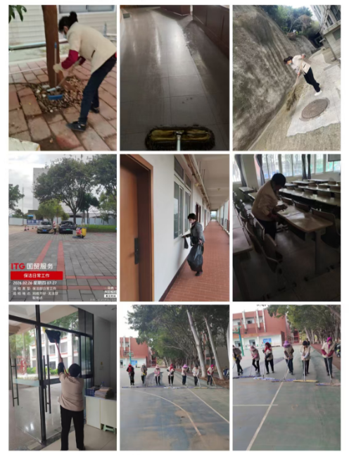精心布置校园春节喜庆氛围,对建筑楼栋公共区域和室外道路和广场进行大扫除,清理建筑楼栋和室外所有下水口、明沟,委托第三方专业单位对二次供水水箱进行专业清洗和消毒,对校园环境开展消毒消杀行动,校园面貌焕然一新。