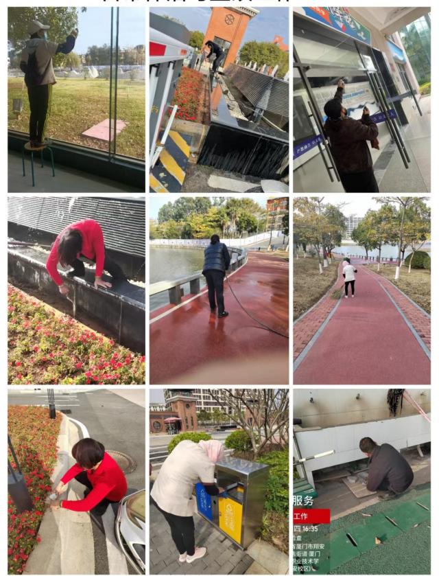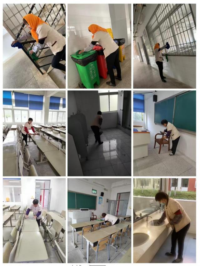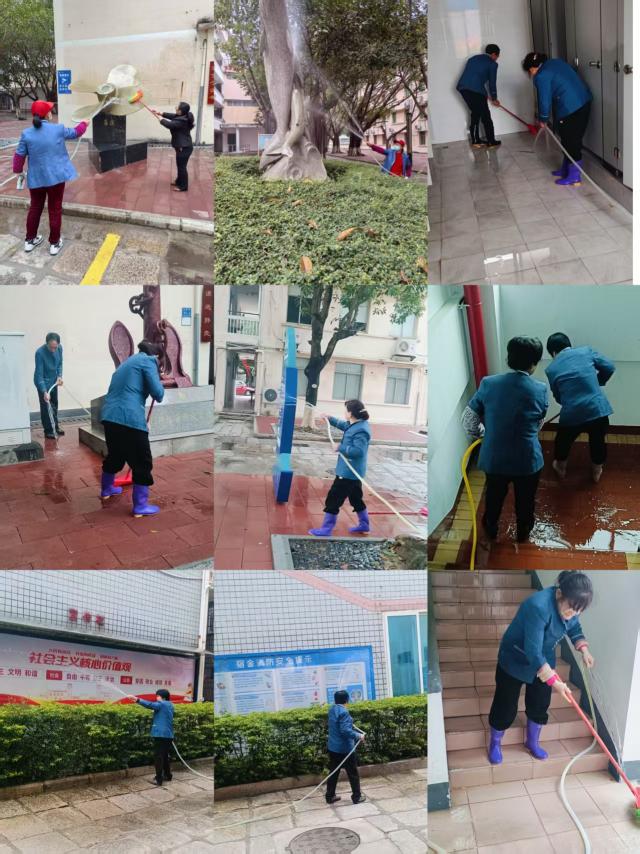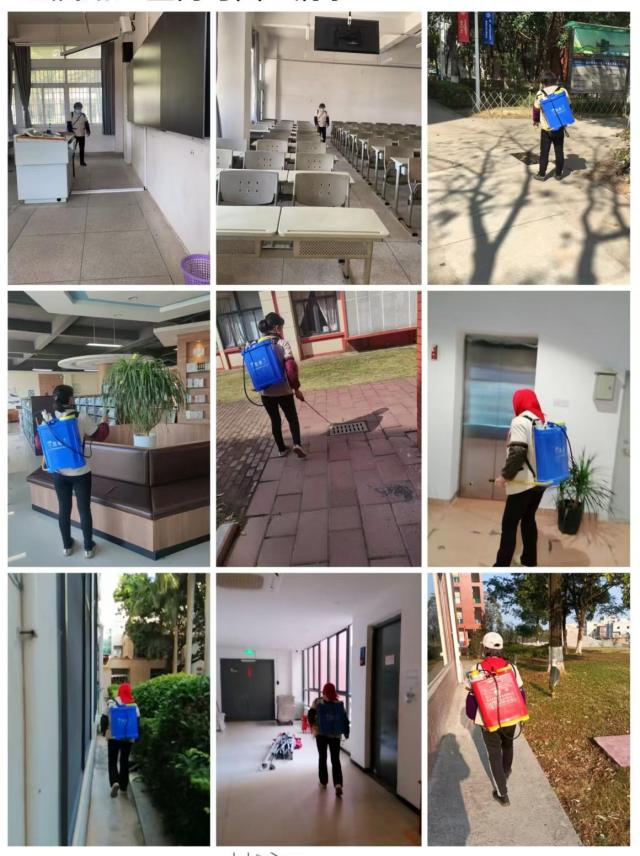 对建筑楼栋公共区域和室外道路和广场进行大扫除,清理建筑楼栋和室外所有下水口、明沟,委托第三方专业单位对二次供水水箱进行专业清洗和消毒,对校园环境开展消毒消杀行动,全面清理校园景观石雕石刻、宣传栏和喷泉水池,校园面貌焕然一新。