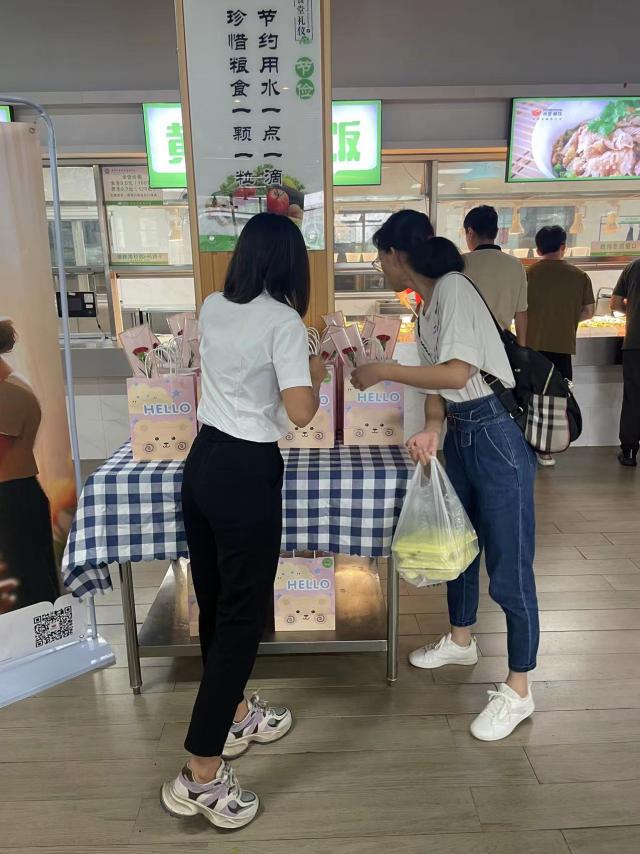 在翔安校区二楼禾堂餐厅用餐的老师还有鲜花和精美点心相送。餐厅员工面带笑容将康乃馨和点心送到老师的手中,收到餐厅暖心的礼物,老师们感到十分欣喜,对餐厅的用心给予赞扬。
